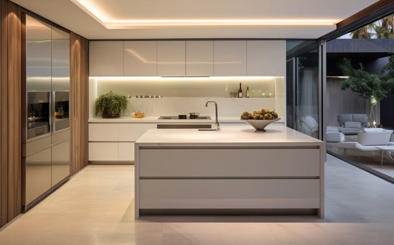 Последний этап — установка декоративной ленты или заглушки, маскирующей стык между полотном и стеной. Также устанавливают светильники и встраиваемые элементы декора.