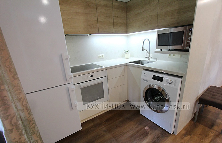 Компания КУХНИ-НСК специализируется на создании дизайн-проектов для маленьких кухонь, учитывая все пожелания заказчика. Дизайнеры грамотно прорабатывают каждую деталь, включая размещение стиральной машины, чтобы обеспечить оптимальное использование пространства. В результате, благодаря тщательному планированию и профессиональному подходу, пожелания заказчика по размещению стиральной машины на маленькой кухне были выполнены. Это служит отличным примером того, как можно успешно интегрировать бытовую технику в ограниченное пространство, не теряя при этом в функциональности и стиле.