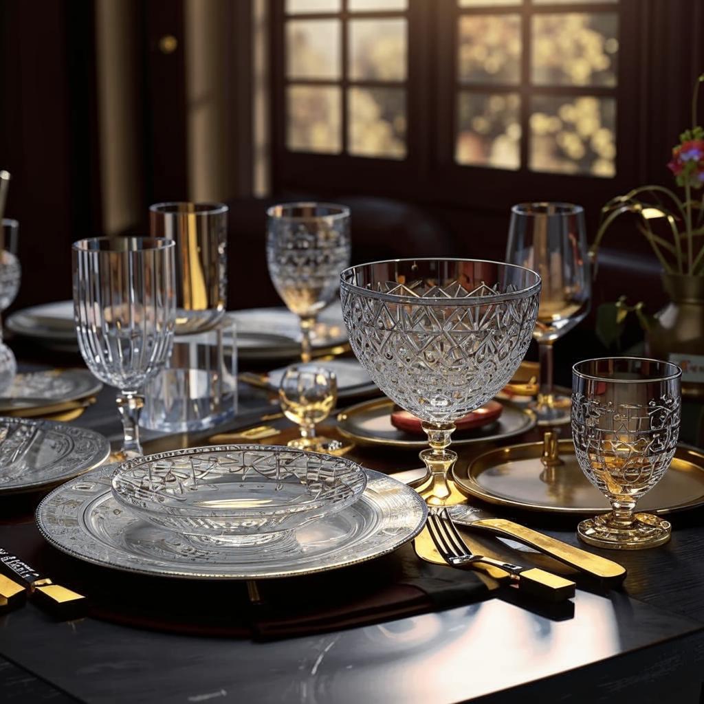 - Отличительной чертой хрусталя является его прозрачность и способность к игре света. В зависимости от угла зрения и освещения, хрустальная посуда может выглядеть совершенно по-разному. Это создает эффект динамики и привлекает внимание к каждому элементу сервировки. Хрусталь также часто используется для создания уникальных предметов интерьера — ваз, люстр и других декоративных элементов, которые становятся настоящими произведениями искусства.